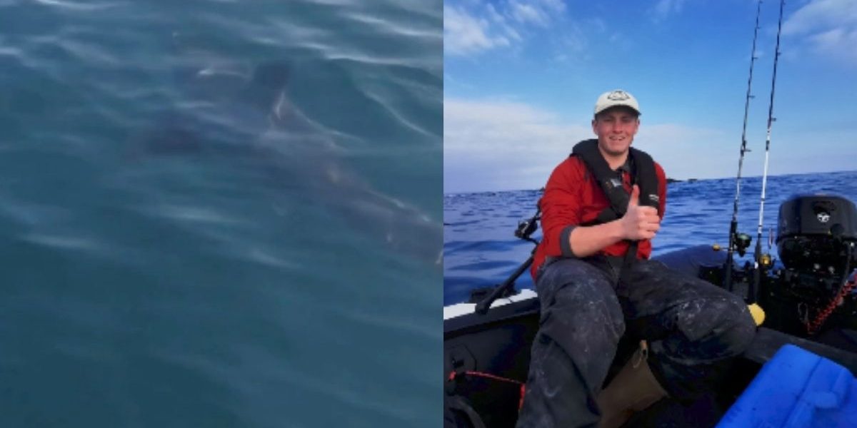 A huge shark circles a fisherman’s boat near Cornwall