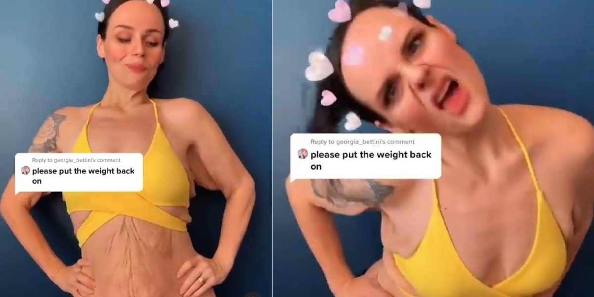 She can be seen dancing to a song and making carefree expressions as a befitting reply to a woman’s comment on her video that says, “Please put the weight back on”, showing that she doesn’t care what people think but she loves herself and owns her body.