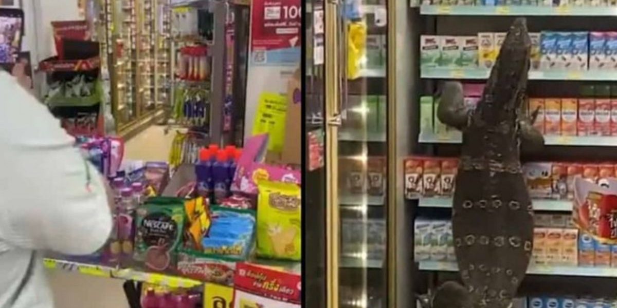 The reptile created havoc in the store as it tried to open packages and threw milk cartons on the floor all the while sending customers and workers in hiding. Initially, the lizard tried opening the refrigerator but when it failed to do so, it climbed the shelves.