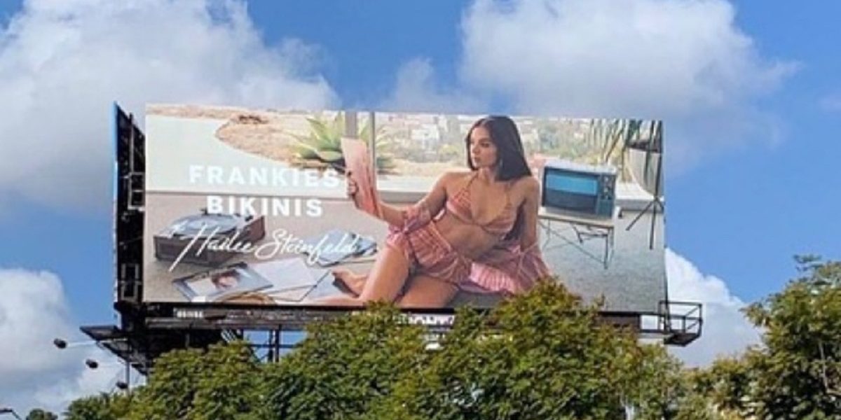 In the second picture, Hailee poses as an absolutely gorgeous model where she is promoting “Frankies Biknis by Hailee Steinfeld”.