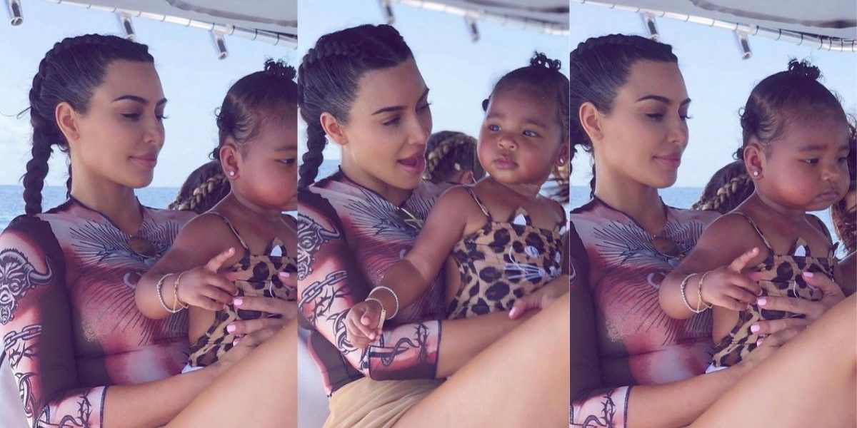 One can’t help but stare at them cuddling together! Kim’s love for babyboo True is evident from these pictures! Luckiest Birthday angel !!