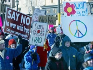 Millions of American protested to acknowledge, sympathise and amplify the struggles in the Iraq war and in solidarity asked their government to pull back. The protest soon became a worldwide movement, around 3000 protests took place for the cause.