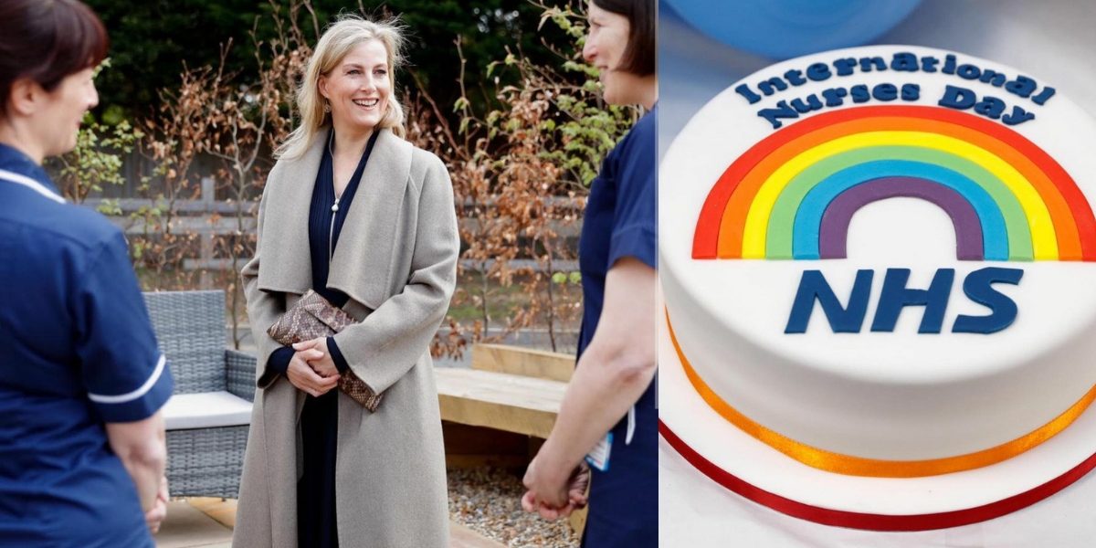 The first couple of pictures, show The Earl and Countess of Wessex’s meet with the nurses at the healthcare facility, followed by another picture of a beautiful white cake, with “International Nurses Day, NHS”, along with a rainbow icing on it.