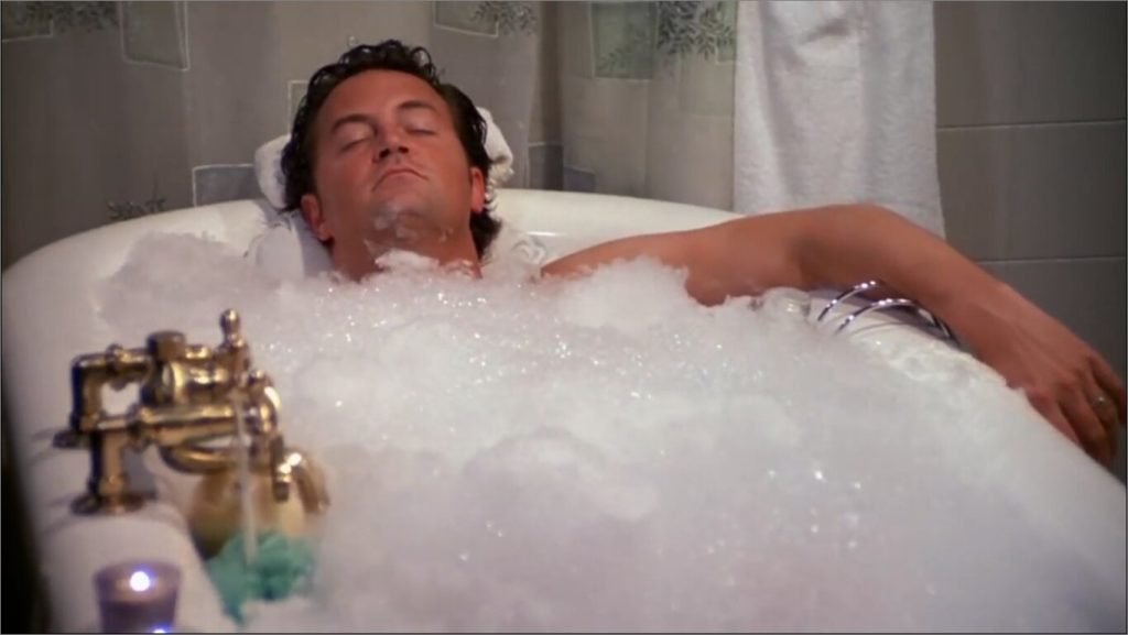 Remember when Chandler first took a bath spread out by Monica and he loved it? It was not just him, seeing our sarcasm king in a bubble bath was hilarious. The most iconic scene was when Chandler got into Monica’s bath and was interrupted by his friends pouring with the news. In the end, each of them was present in the bathroom when Ross and Rachel announced the sex of their child. The whole scene was top-notch! He even had his “boat!”