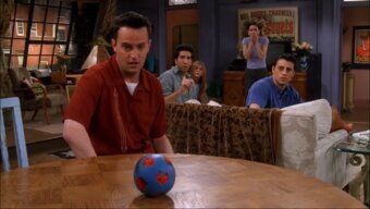 In the episode, “The one with the ball” we see the group playing the game of catch and throw with a ball going on for hours. The sarcasm entered the group when Chandler tried to join in but Monica denied saying, “He is a dropper.” He actually is! The whole episode then went on with the four friends, Ross, Joey, Monica, and Chandler playing the ball game till Pheobe’s interruption. Despite the whole competitive game, the end scores proving that Chandler’s definite dropper was the cherry on top.
