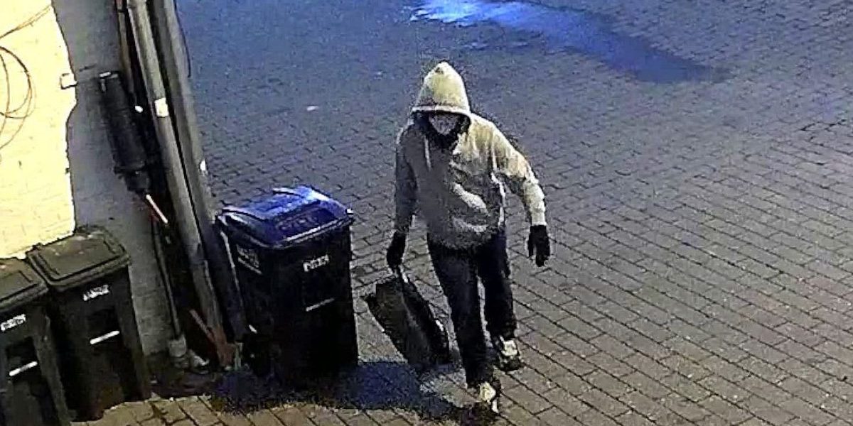The FBI also identified the suspect’s shoes as Nike Air Max Speed Turf shoes in yellow, black, and gray, and included enhanced photos of them, along with photos of the devices. The person appears in a gray hooded sweatshirt and is carrying a backpack.