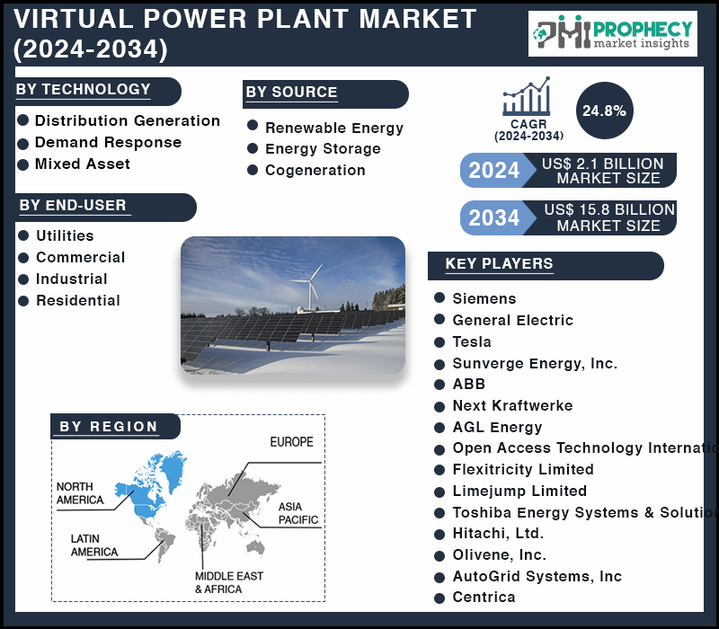 Browse Detail Report on “Virtual Power Plant Market Size, Share, By Technology (Distribution Generation, Demand Response, and Mixed Asset), By Source (Renewable Energy, Energy Storage, and Cogeneration), By End-User (Utilities, Commercial, Industrial, and Residential), and Region (North America, Europe, Asia Pacific, Middle East and Africa, and South America) – Trends, Analysis, and Forecast till 2034” with complete TOC @ https://www.prophecymarketinsights.com/market_insight/virtual-power-plant-market-5409